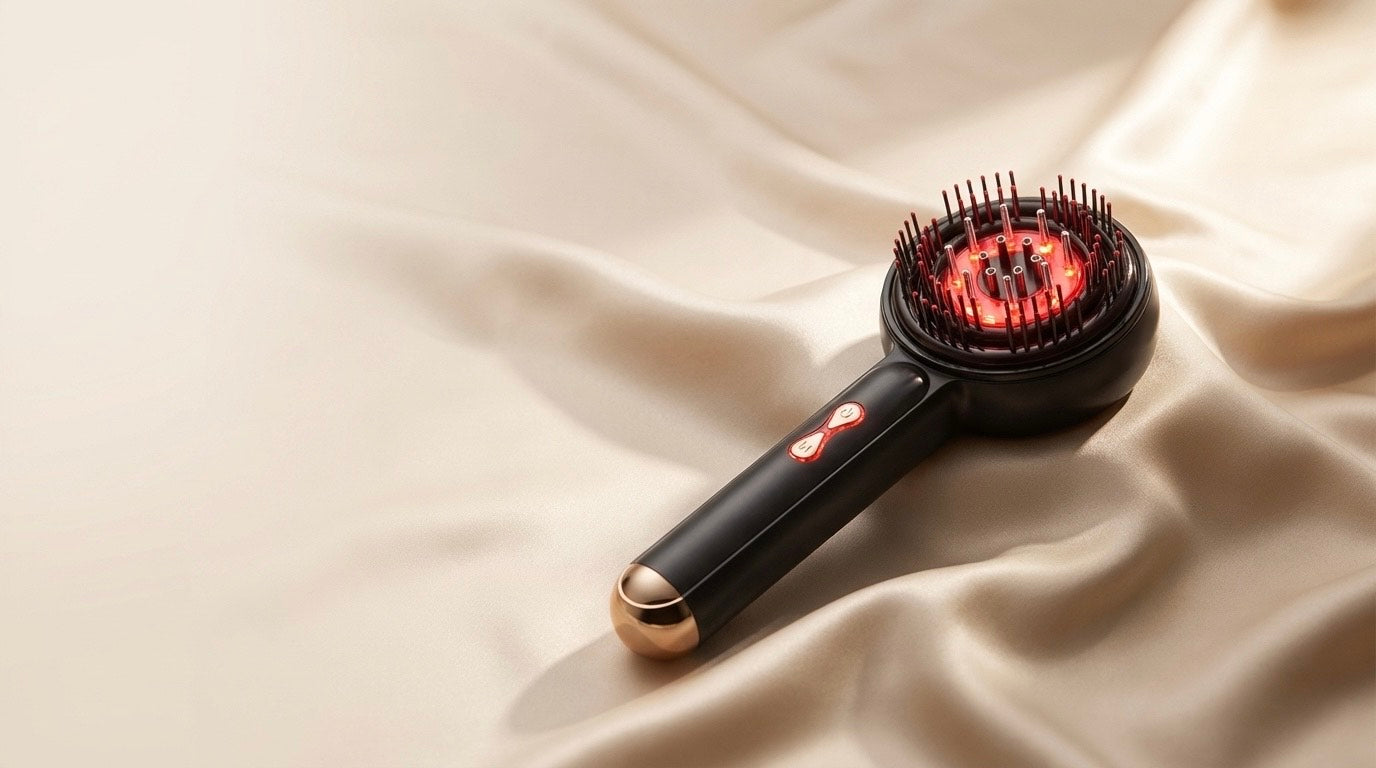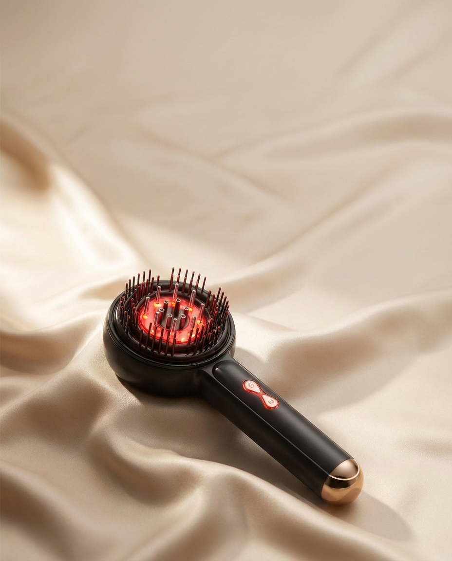 A calming daily scalp treatment that boosts circulation, eases tension, and helps your hair grow stronger and healthier. Meet ™SATÉLLE LumiGrowth — a gentle blend of red light therapy, soothing massage, and effortless oil application.
